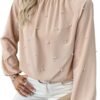 Blouses | Women Apricot Scallop Edge V Neck Lace Patchwork Flounce Sleeve Top