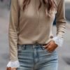 Long Sleeve Tops | Women Goat Colorblock Floral Patchwork Flared Sleeve Henley Top