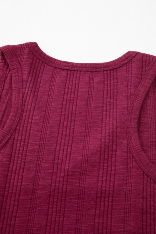 Sleeveless Tops | Women Red Dahlia Ribbed Textured Exposed Stitching Tank Top