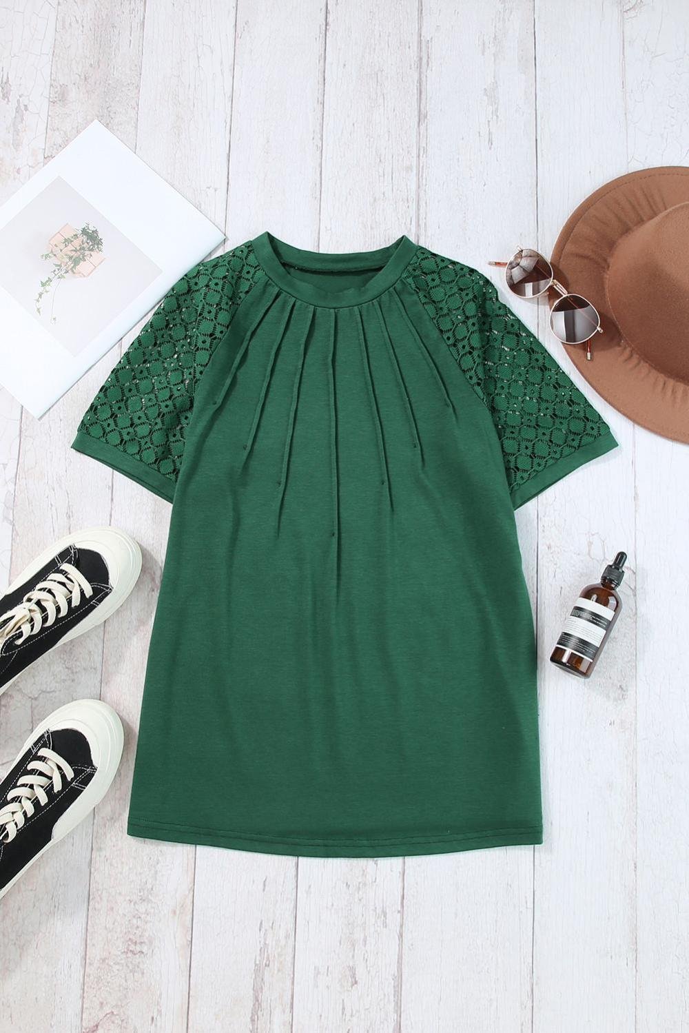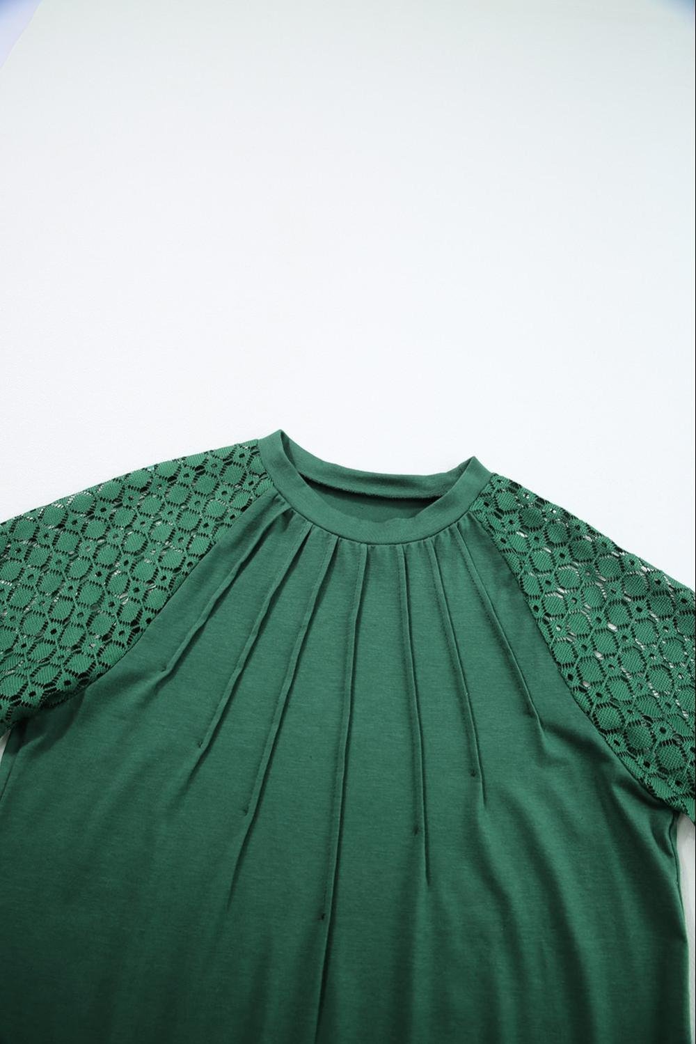 - The Tee Is A Trendy And Versatile Piece, Featuring Seamed Detailing And Contrast Lace Raglan Sleeves For A Stylish And Unique Look.